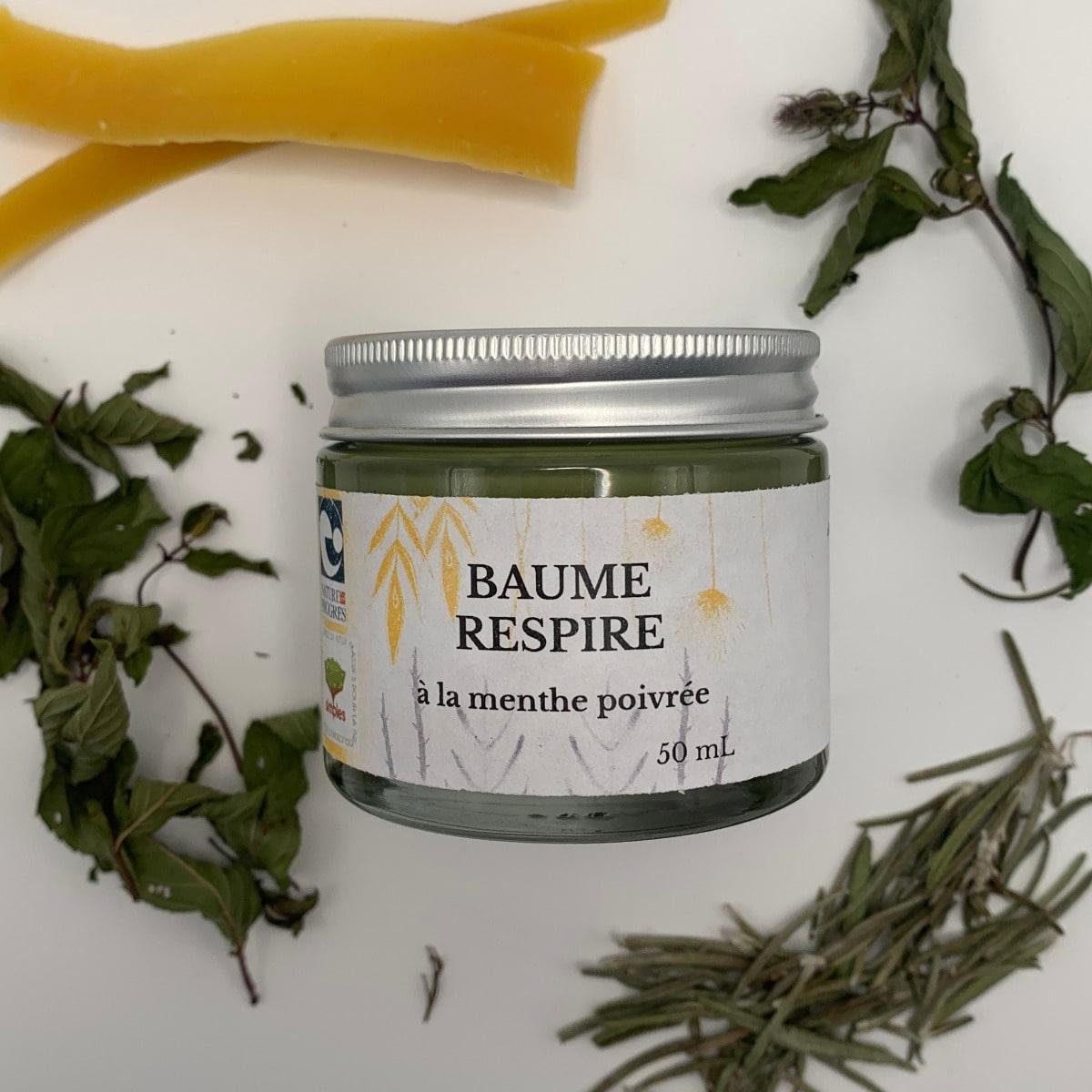 Ingrédients : Macération de feuilles de menthe poivrée dans l’huile de tournesol AB (Meuse), huiles essentielles de menthe poivrée et de romarin à cinéole, cire d’abeille, limonene, linalool