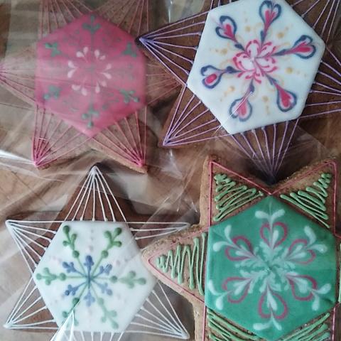 Une grande Étoile de Noël en pains d'épices décorés au glaçage royal, colorant alimentaires naturels