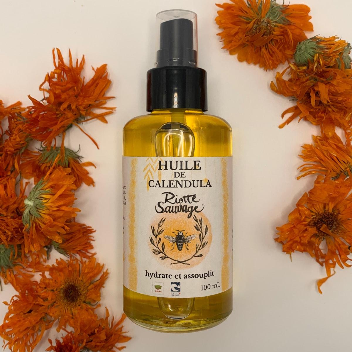 Ingrédients : Huile de tournesol bio, fleurs de calendula off., huile essentielle de lavande (1‰), geraniol, limonene
