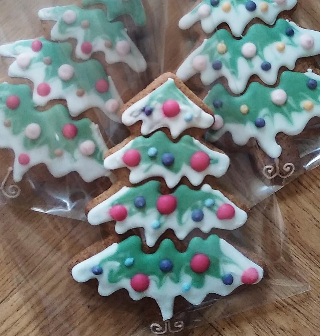 Un grand Sapin de Noël en pains d'épices décoré au glaçage royal, colorant alimentaires naturels