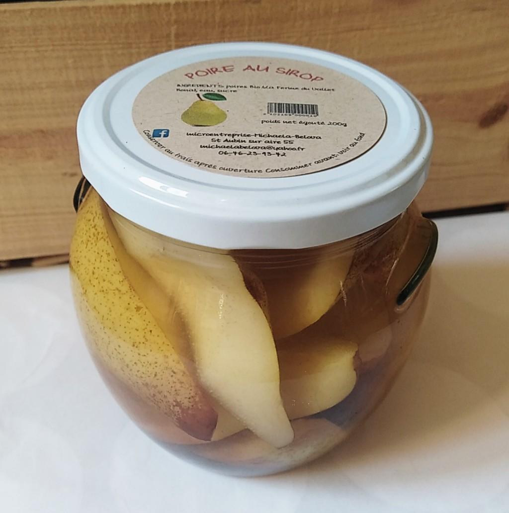 Ingrédients: poires Bio ( La Ferme du Vallet Bona), eau, sucre