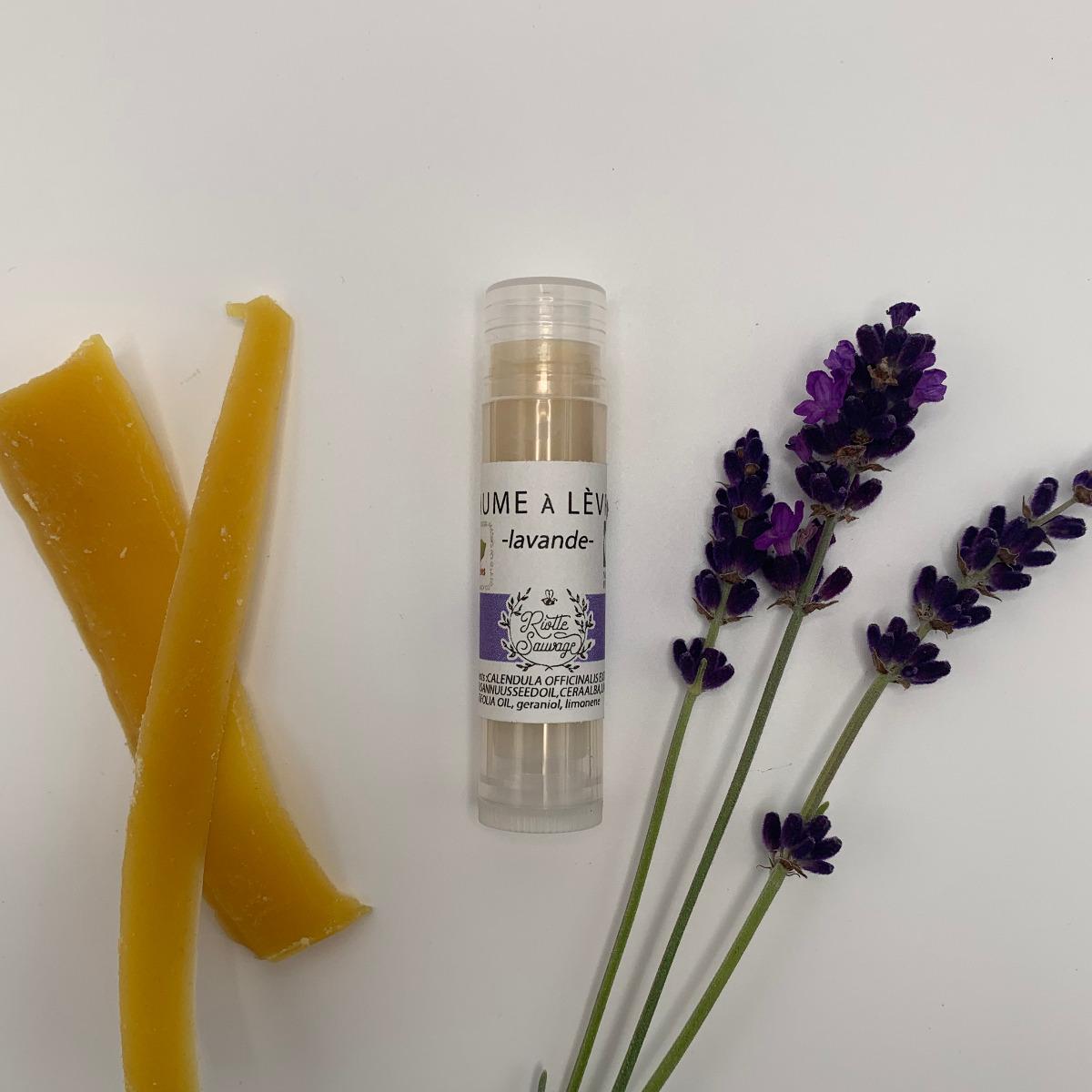 L'huile essentielle de lavande bio augmente le pouvoir cicatrisant du stick à lèvres.
